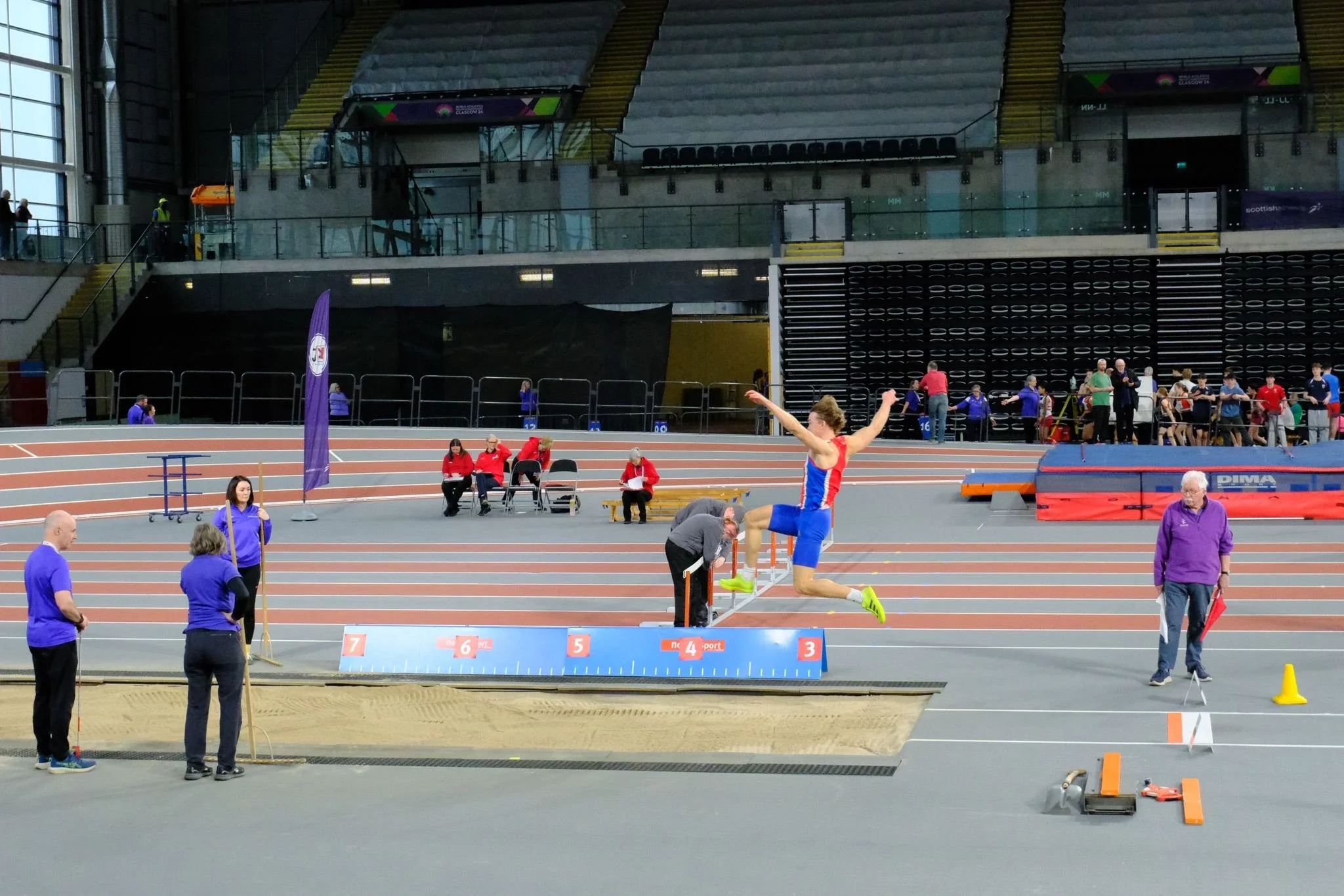 The UK indoor heptathlon was hosted by Scottish Athletics at the fantastic Emirates Arena in Glasgow. Sammy started the competition with a positive 7.08 seconds, a tenth off his personal best. Having clearly lost more that a tenth with a poor reaction and start, it’s clear that the basic speed is there as he crept his way through the field. In the long jump Sammy produced a 7.23m second jump which although short of his 7.57m personal best still represented an indoor best ever performance. Sammy waited until the final round in the shot put to produce a 14.83m put which is his best throw since July 2024 and put him into a leading position in the competition which he kept til the end. Day one was completed with a solid 1.97m leap in the high jump. Of all the events affected by Sammy’s rib issues since January it was the high jump technical training most impacted. The result was therefore encouraging.